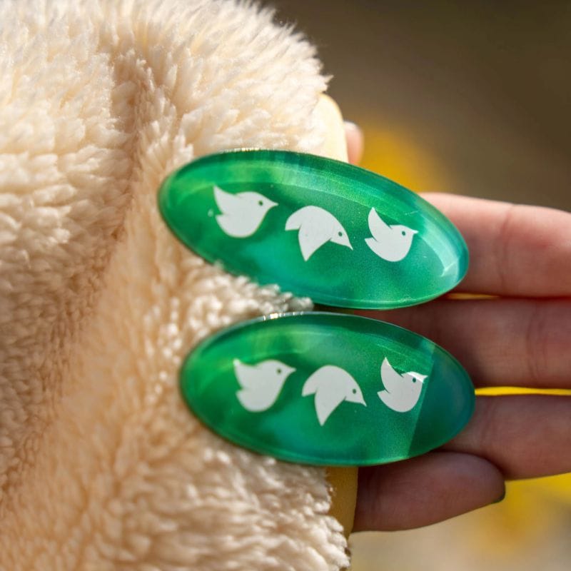 Adorn your hair with a double dose of forest charm. This pair of duckbill clips is crafted from high-quality acrylic, precisely laser-cut into the lively silhouette of the skylark. The metal duckbill mechanism offers a secure grip without damaging your hair. The symmetrical left-right design is perfect for styling bangs, securing side strands, or wearing as a pair for a effortlessly fresh, nature-inspired look.