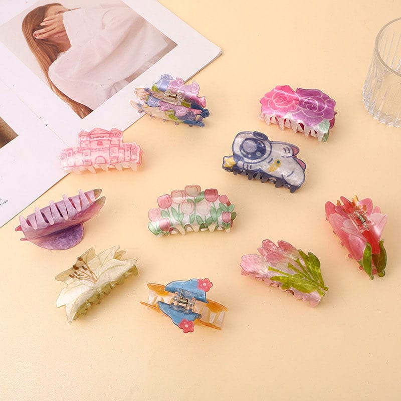 Fashion astronaut acrylic hair clips with cute carton feature, make your hairstyle more special and cute! A must have unique hair styling accessory for your daily wear or as gift for beloved ones. Elegant and simple colorful acrylic claw hair clip can perfectly hold thin to thick hair well, help you quickly tie up hair, no more pesky strands tangled. Ideal for daily beauty routine, sporting, cooking, travel, office work, makeup, wash face, shopping, wedding, prom party or keep hair tidy when shower, barber shop, kitchen, gym and more.