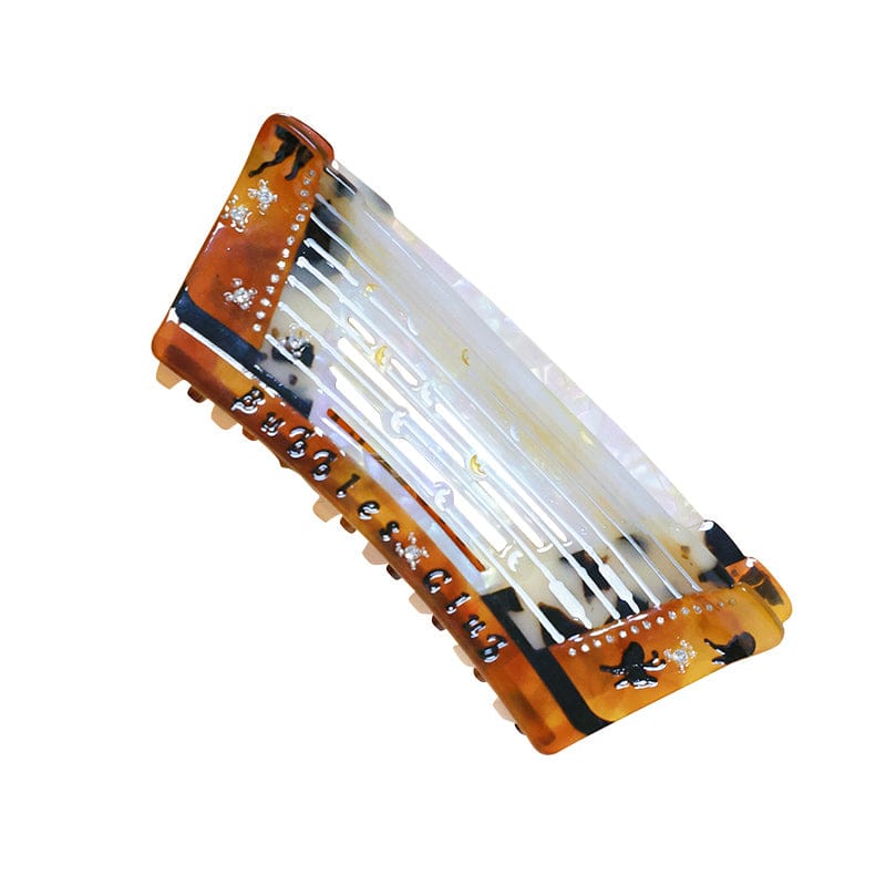 Inspired by the graceful curves of the yangqin, crafted in translucent acetate. Warm brown tones echo the instrument¡¯s wooden body, while luminous jade-white highlights shimmer like light across its strings. The collection includes five pieces, from hair clips to necklaces.
