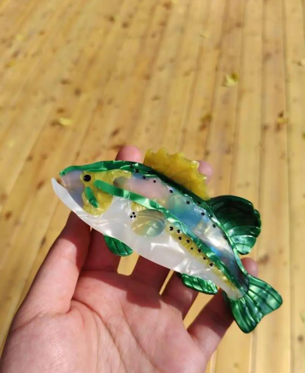Matthew I ordered the largemouth bass clip after seeing it online—I'm a huge fishing nut so I just had to grab it. I actually run a little outdoor-themed Etsy shop myself, so I really appreciate getting to support handmade goods like this. Quality's awesome and it's seriously adorable. Been wearing it pretty much every day 🎣 Highly recommend!
