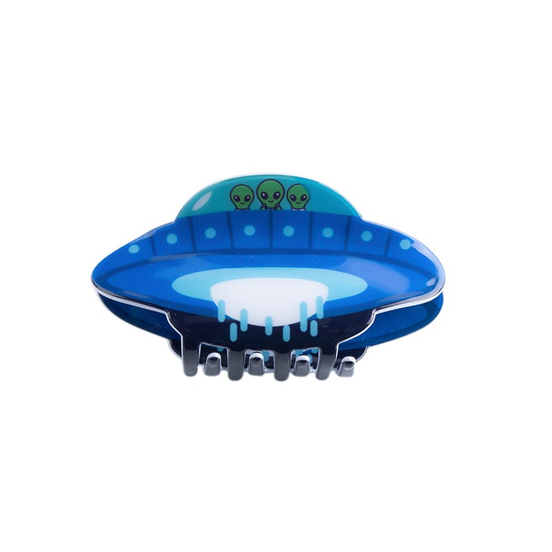 The Alien Action Team is off! They're flying a blue UFO that wants to take over your hair. Blending fashion with the mysterious universe, this accessory features a fascinating design of UFO and alien, adding a touch of mystery and glamour to your hairstyle.