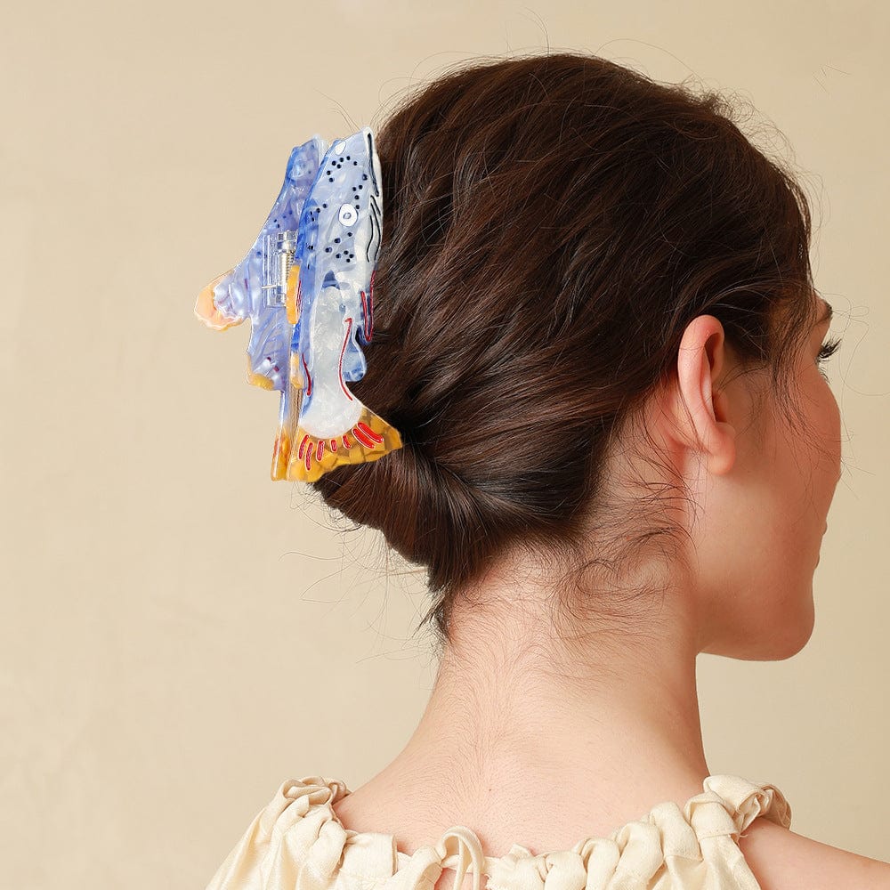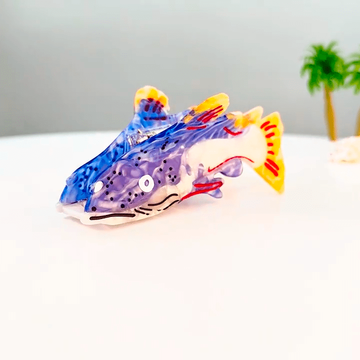 The Medium Freshwater Blue Catfish Hair Claw adds a delightful and playful twist to your hairstyle. Its medium size is ideal for securing larger sections of hair, while the charming blue catfish design brings a whimsical and eye-catching element.