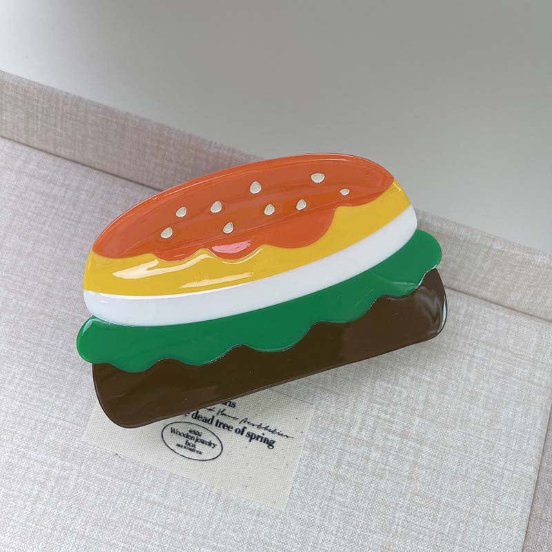 This hamburger-shaped hair clip adds a touch of fashion and fun to your hairstyle with its unique design and practicality.