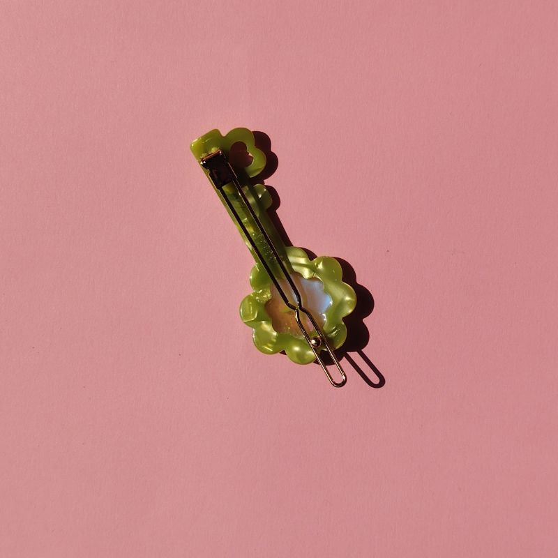 Design: Key-shaped clip with four-leaf clover detailing