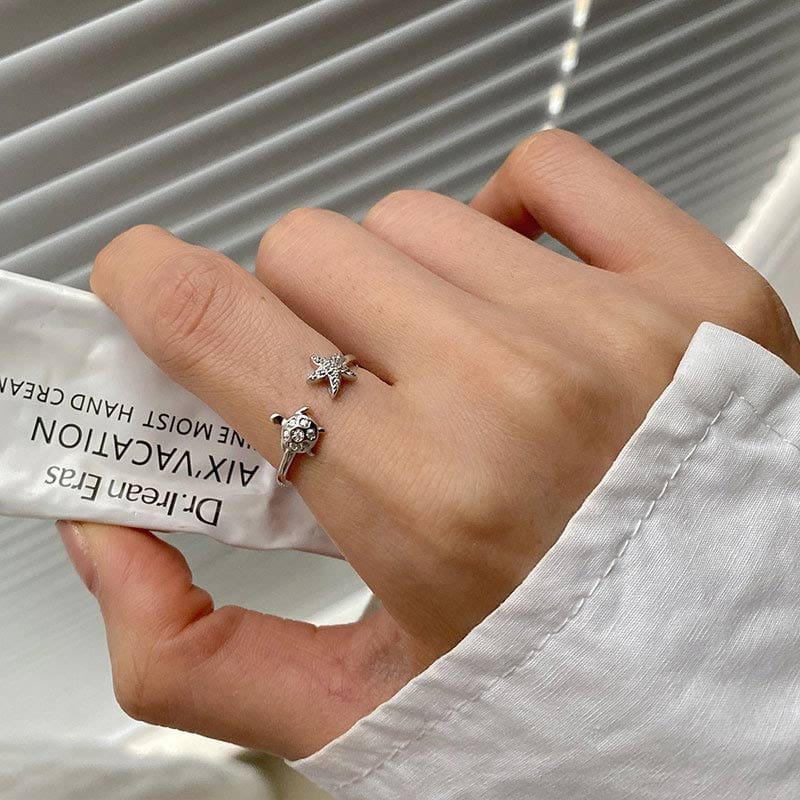 Sterling Silver Sea Turtle Starfish Adjustable Ring丨Lemonschunks